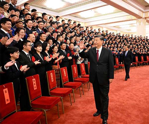 Around 2,300 delegates gathered in Beijing’s imposing Great Hall of the People, bedecked in the party’s signature red and gold with banners bearing slogans hailing